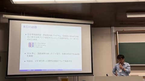 Ikuma Ogura (Cluster B) presented a paper titled Lingua Franca of Ideology? Common and Country-Specific Measures of Operational and Symbolic Ideology in Asian and Western Countries at the plenary roundtable of the Japanese Association of Electoral Studies annual meeting held on May 8, 2025. This paper, written by Ikuma Ogura, Hirofumi Miwa, and Yuko Kasuya, addresses the importance of using country-specific ideological measures through original survey research conducted in India, Indonesia, Japan, South Korea, Taiwan, UK, and the US in 2024.