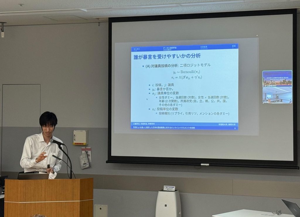 Hirofumi Miwa from Cluster B presented his co-authored research on the gendered nature of social media comments in Japan.