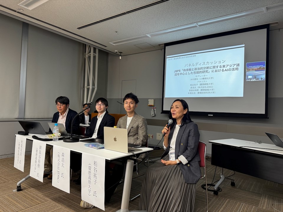 Yuko Kasuya, Kota Mori, and Yuki Mikiya from Cluster A took part in a panel discussion on the application of AI in politics and economics. They presented their ongoing research, including a study analyzing YouTube content from Indonesia’s presidential election and another examining the Twitter activity of Chinese diplomats.