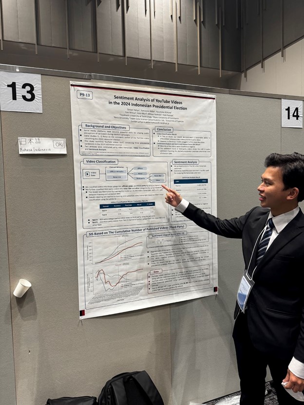 Zaidan Yaha (Toyohashi University of Technology, TUT) , Tomoyoshi Akiba (TUT), and members of Cluster A has presented a paper titled Sentiment Analysis of YouTube Videos in the 2024 Indonesian Presidential Election at the 31st Annual Meeting of Natural Language Processing Association (NLP2025) in Nagasaki on March 13, 2025. The paper analyses the YouTube videos posted during the 2024 presidential election in Indonesia.